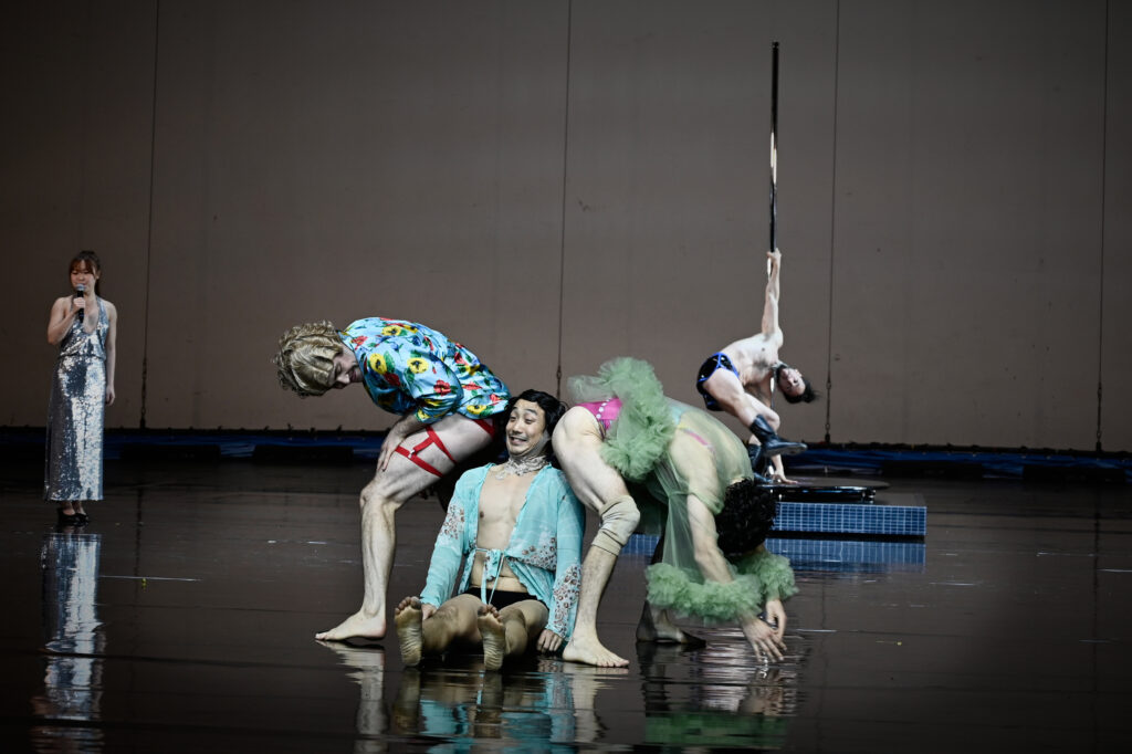 Jill Emerson, the iconic performer from DorkyPark’s earlier works, is back in the show, surrounded by all-new cast members. The characters find themselves in a casting of a reality show after a love break up. They try to be themselves absolute originals and at the same time become archetypes for a mass audience. Fetishized objects of former relationships accumulate like debris under a mountain of rubble.